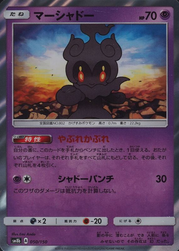 This card is 1 of 2 Marshadow's card variations in the 2018 Japanese Sun & Moon: GX Ultra Shiny set being tracked by Sports Card Investor, including Reverse Holo.