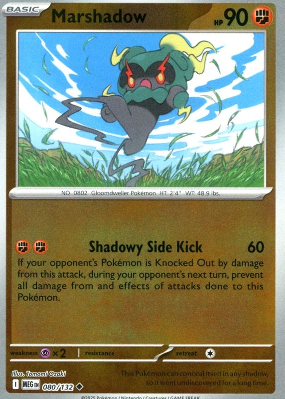 The Marshadow 2025 Mega Evolution #080/132 Reverse Holo card in Raw TCG (Near Mint) condition has moved up $0.30 (+26.1%) in the last 30 days and was last sold for $1.45 .