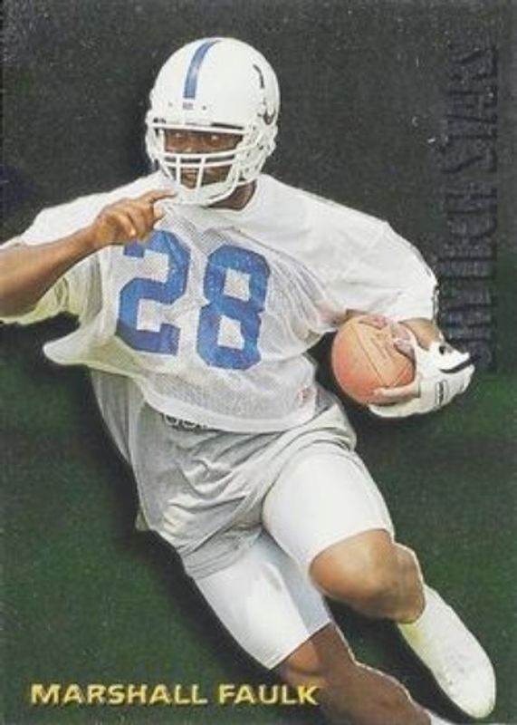 The Marshall Faulk 1994 Skybox Premium #ST-21 SkyTech Stars Rookie card is 1 of 3 Marshall Faulk's card variations in the 1994 Skybox Premium set being tracked by Sports Card Investor, including Base, and Prime Time Rookies.