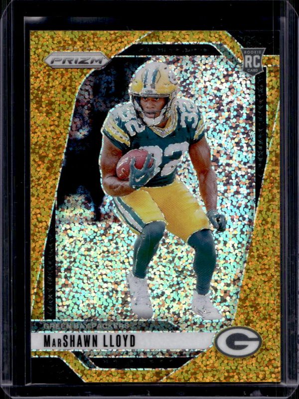 The MarShawn Lloyd 2024 Prizm #374 Gold Sparkle /24 Rookie card is 1 of 113 MarShawn Lloyd's card variations in the 2024 Prizm set being tracked by Sports Card Investor, including Base, Choice Blue Yellow Green, Choice Silver, Disco, and Green.