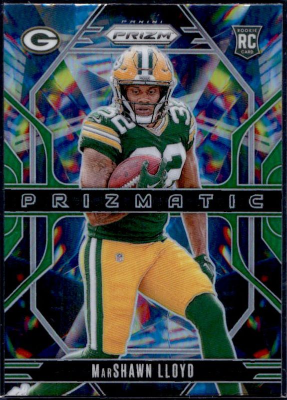 The MarShawn Lloyd 2024 Prizm #4 Prizmatic - Green Rookie card is 1 of 113 MarShawn Lloyd's card variations in the 2024 Prizm set being tracked by Sports Card Investor, including Base, Choice Blue Yellow Green, Choice Silver, Disco, and Green.