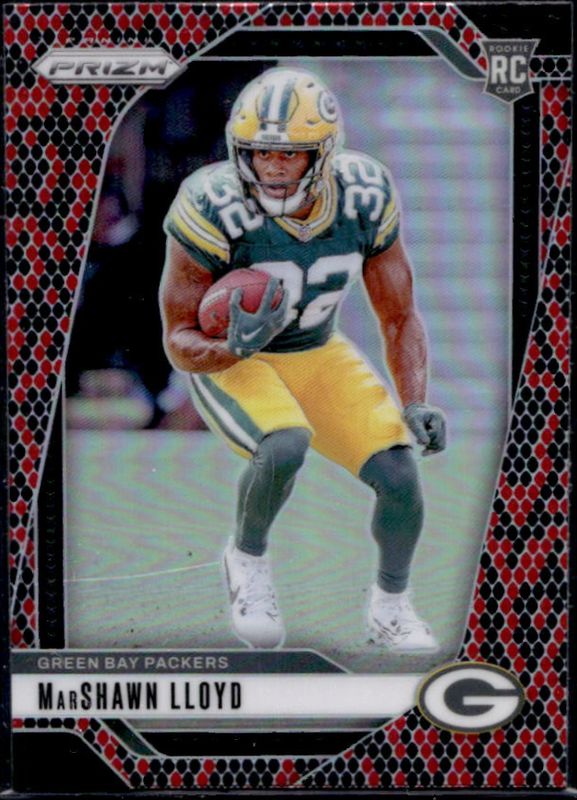 The MarShawn Lloyd 2024 Prizm #374 Snakeskin /(SSP) Rookie card is 1 of 113 MarShawn Lloyd's card variations in the 2024 Prizm set being tracked by Sports Card Investor, including Base, Choice Blue Yellow Green, Choice Silver, Disco, and Green.