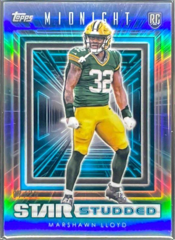 The MarShawn Lloyd 2024 Topps Midnight #SS-11 Star Studded - Moonrise /25 Rookie card is 1 of 54 MarShawn Lloyd's card variations in the 2024 Topps Midnight set being tracked by Sports Card Investor, including Base, Moon Beam, Zodiac, Morning /149, and Twilight /99.