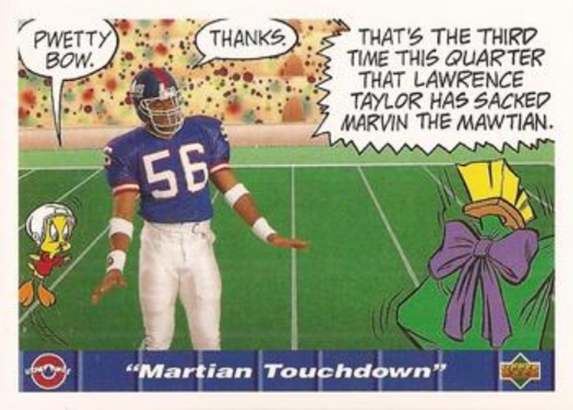 The Martian Touchdown 1992 Upper Deck Comic Ball IV #155 Base card is 1 of 18 Martian Touchdown's card variations in the 1992 Upper Deck Comic Ball IV set being tracked by Sports Card Investor, including #154 Base, #156 Base, #157 Base, #158 Base, and #159 Base.