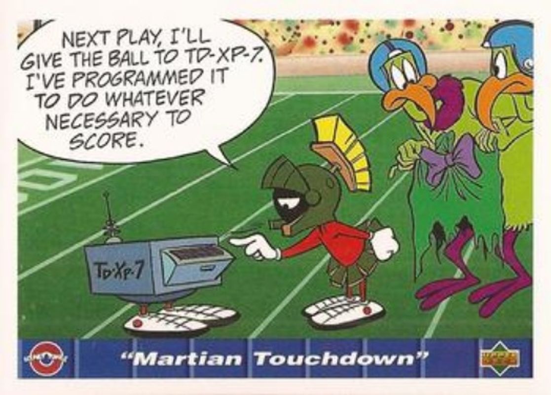 The Martian Touchdown 1992 Upper Deck Comic Ball IV #157 Base card is 1 of 18 Martian Touchdown's card variations in the 1992 Upper Deck Comic Ball IV set being tracked by Sports Card Investor, including #154 Base, #155 Base, #156 Base, #158 Base, and #159 Base.