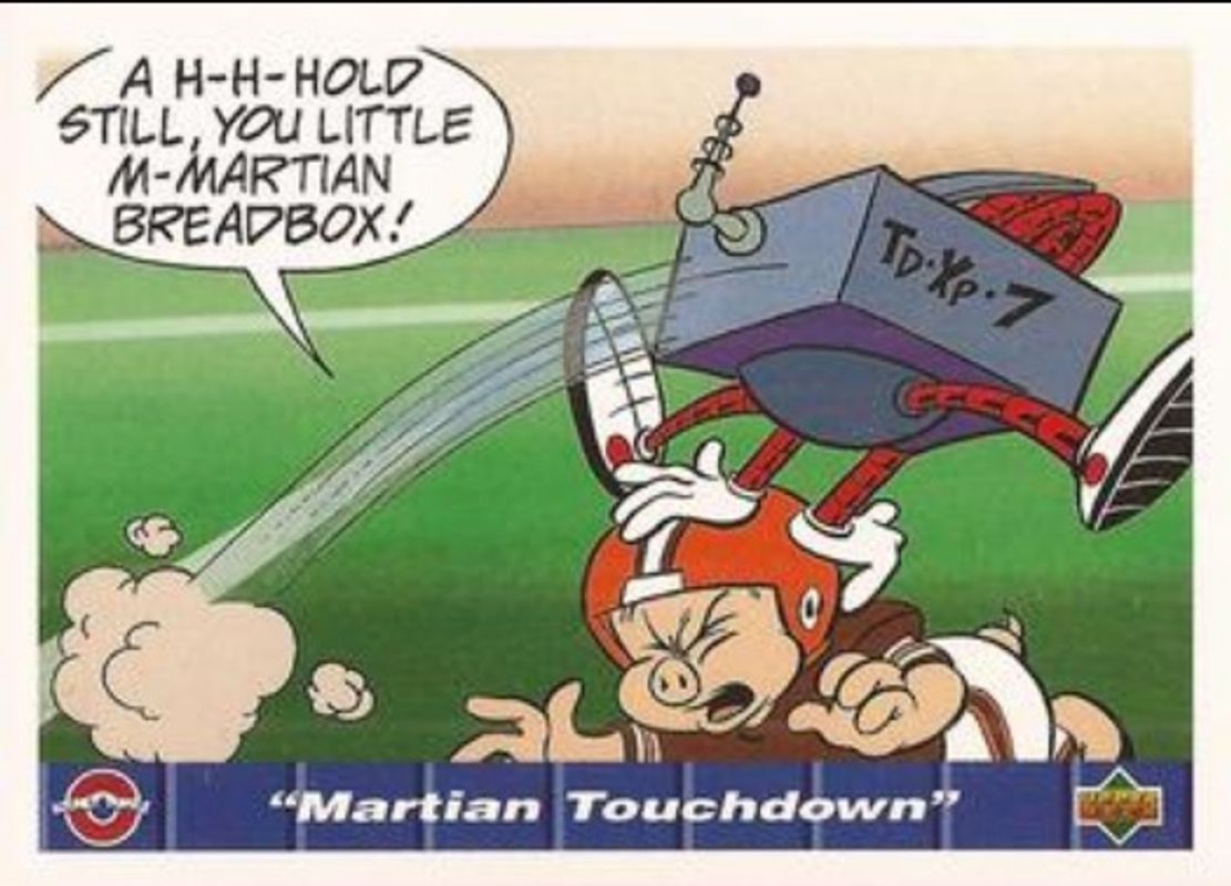 The Martian Touchdown 1992 Upper Deck Comic Ball IV #161 Base card is 1 of 18 Martian Touchdown's card variations in the 1992 Upper Deck Comic Ball IV set being tracked by Sports Card Investor, including #154 Base, #155 Base, #156 Base, #157 Base, and #158 Base.