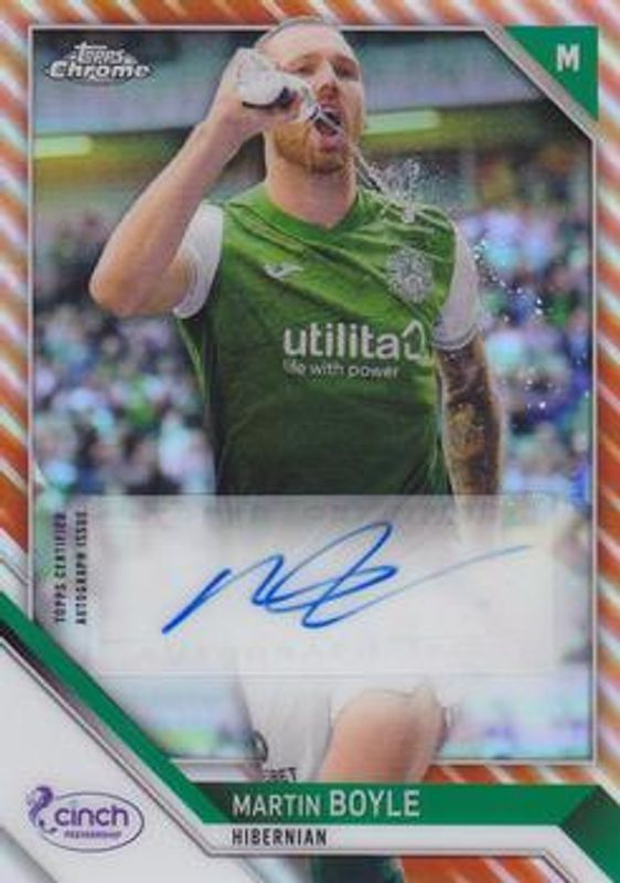 The Martin Boyle 2021 Topps Chrome SPFL #CA-MB Autographs - Orange /25 card is 1 of 18 Martin Boyle's card variations in the 2021 Topps Chrome SPFL set being tracked by Sports Card Investor, including Base, Refractor, Blue Tartan /125, Gold /75, and Green Tartan /50.