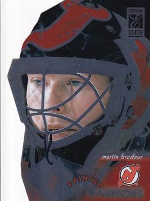 The Martin Brodeur 1996 Donruss Elite #8 Painted Warriors /2500 card is 1 of 4 Martin Brodeur's card variations in the 1996 Donruss Elite set being tracked by Sports Card Investor, including Base, Die-Cut, and Painted Warriors Promo.