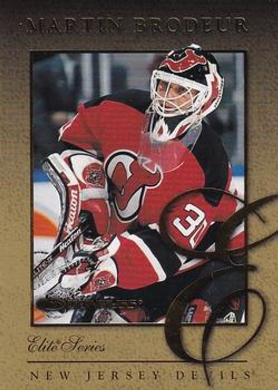 The Martin Brodeur 1997 Donruss #10 Elite Series /2500 card is 1 of 5 Martin Brodeur's card variations in the 1997 Donruss set being tracked by Sports Card Investor, including Base, Between the Pipes Promos, Elite Series Promos, and Between The Pipes /3500.