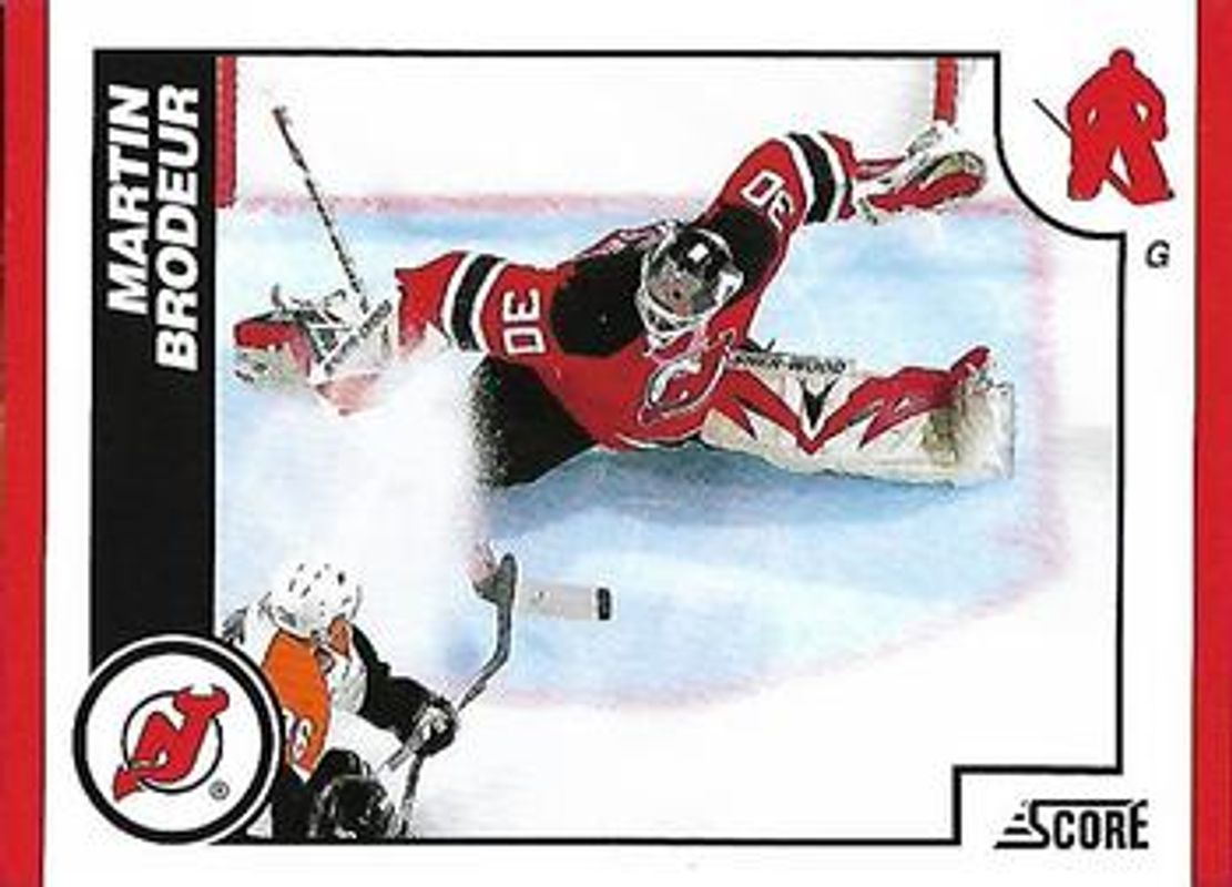 The Martin Brodeur 2010 Score #305 Base card is 1 of 16 Martin Brodeur's card variations in the 2010 Score set being tracked by Sports Card Investor, including #7 Base, #8 Base, #11 Base, #305 20th Anniversary, and #8 20th Anniversary.