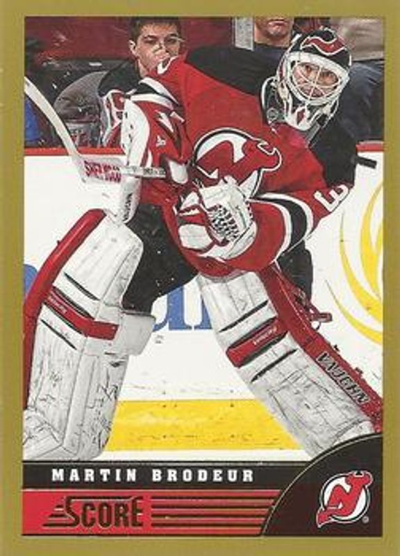 The Martin Brodeur 2013 Score #292 Gold card is 1 of 14 Martin Brodeur's card variations in the 2013 Score set being tracked by Sports Card Investor, including #588 Base, #292 Base, #588 Black, #292 Black, and #588 Gold.
