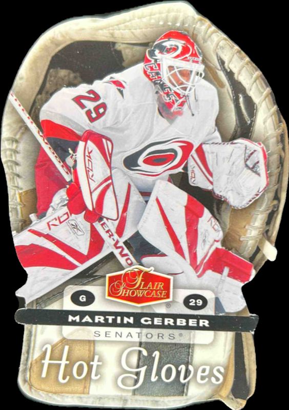 The Martin Gerber 2006 Flair Showcase #HG6 Hot Gloves card is 1 of 10 Martin Gerber's card variations in the 2006 Flair Showcase set being tracked by Sports Card Investor, including #191 Legacy Collection /50, #249 Legacy Collection /50, #68 Legacy Collection /50, #68 2006 Fleer Flair Showcase, and #191 2006 Fleer Flair Showcase.