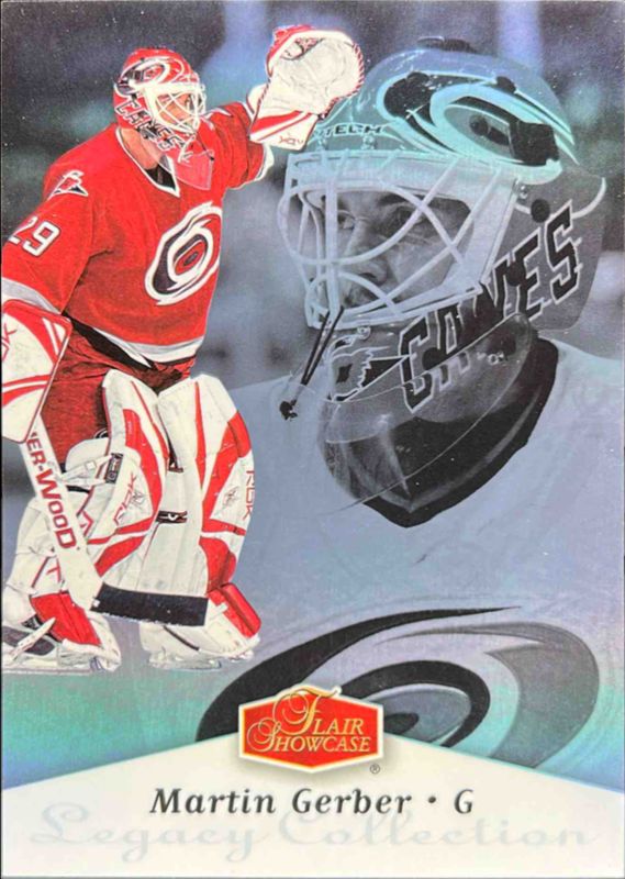 The Martin Gerber 2006 Flair Showcase #68 Legacy Collection /50 card is 1 of 10 Martin Gerber's card variations in the 2006 Flair Showcase set being tracked by Sports Card Investor, including #191 Legacy Collection /50, #249 Legacy Collection /50, #68 2006 Fleer Flair Showcase, #191 2006 Fleer Flair Showcase, and #249 2006 Fleer Flair Showcase.