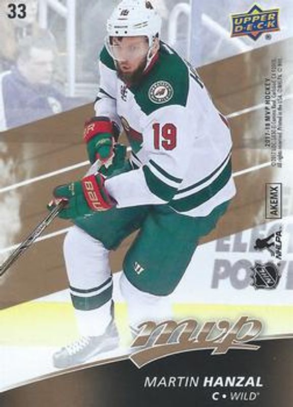 The Martin Hanzal 2017 Upper Deck MVP #33 Puzzle Backs card is 1 of 10 Martin Hanzal's card variations in the 2017 Upper Deck MVP set being tracked by Sports Card Investor, including Base, Green Script, Silver Script, Gold Script /100, and Super Script /25.