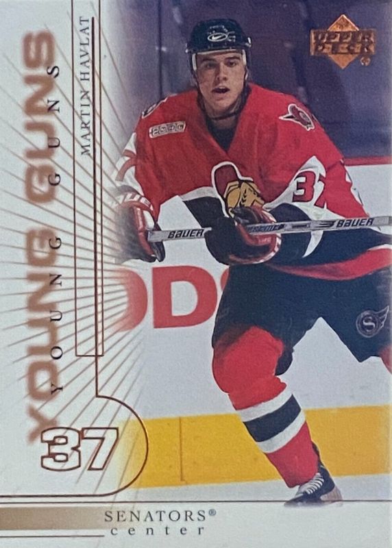 This card is 1 of 3 Martin Havlat's card variations in the 2000 Upper Deck set being tracked by Sports Card Investor, including Young Guns - UD Exclusives Tier 1 /100, and Young Guns - UD Exclusives Tier 2 /25.