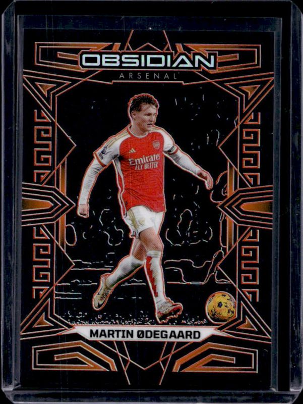 The Martin Odegaard 2023 Obsidian #10 Electric Etch Orange /40 card is 1 of 34 Martin Odegaard's card variations in the 2023 Obsidian set being tracked by Sports Card Investor, including #180 Base /120, #10 Base /120, #10 Electric Etch Red Pulsar /49, #180 Electric Etch Red Pulsar /49, and #180 Electric Etch Orange /40.