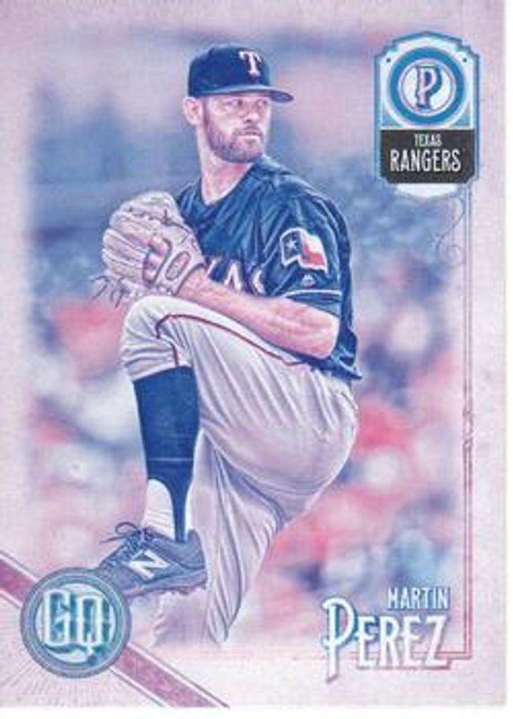The Martin Perez 2018 Topps Gypsy Queen #32 Missing Black Plate card is 1 of 12 Martin Perez's card variations in the 2018 Topps Gypsy Queen set being tracked by Sports Card Investor, including Base, Bazooka Back, GQ Logo Swap, Green, and Missing Team Name.