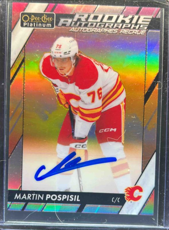 The Martin Pospisil 2024 O-Pee-Chee Platinum #R-MP 2023-24 Update Rookie Auto - Sunset card is 1 of 11 Martin Pospisil's card variations in the 2024 O-Pee-Chee Platinum set being tracked by Sports Card Investor, including 2023-24 Update Rookie Auto, 2023-24 Update Rookie Auto - Matte Pink, 2023-24 Update Rookie Auto - Rainbow, 2023-24 Update Rookie Auto - Violet Pixels /99, and 2023-24 Update Rookie Auto - Cosmic /65.