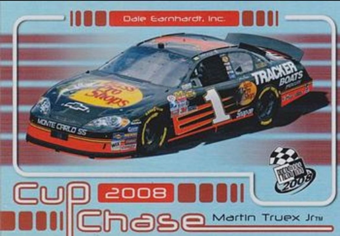 The Martin Truex Jr. 2008 Press Pass #CCR-8 Cup Chase card is 1 of 36 Martin Truex Jr.'s card variations in the 2008 Press Pass set being tracked by Sports Card Investor, including #11 Base, #90 Base, #79 Base, #113 Base, and #B79 Blue.