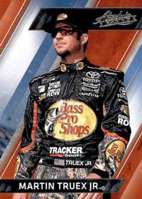 The Martin Truex Jr. 2017 Absolute NASCAR #68 Base card is 1 of 47 Martin Truex Jr.'s card variations in the 2017 Absolute NASCAR set being tracked by Sports Card Investor, including Spectrum Silver /299, Spectrum Blue /199, Spectrum Red /99, Spectrum Gold /25, and Printing Plates Black /1.