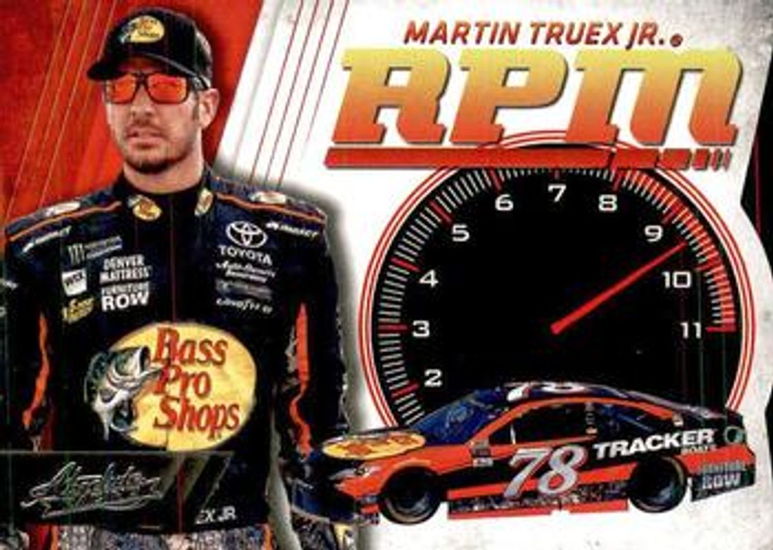 The Martin Truex Jr. 2017 Absolute NASCAR #RPM13 RPM card is 1 of 47 Martin Truex Jr.'s card variations in the 2017 Absolute NASCAR set being tracked by Sports Card Investor, including Base, Spectrum Silver /299, Spectrum Blue /199, Spectrum Red /99, and Spectrum Gold /25.
