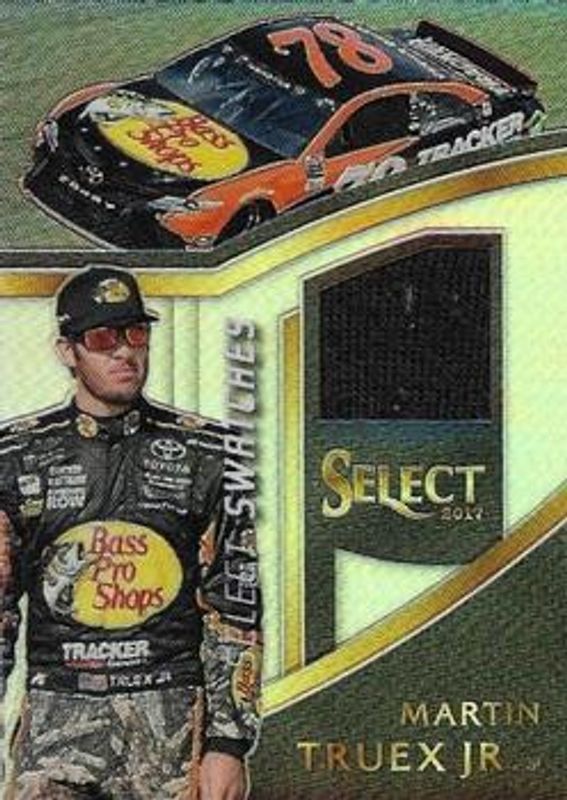 The Martin Truex Jr. 2017 Select NASCAR #MT Select Swatches card is 1 of 76 Martin Truex Jr.'s card variations in the 2017 Select NASCAR set being tracked by Sports Card Investor, including #103 Base, #31 Base, #32 Base, #33 Base, and #33 Purple Pulsar.