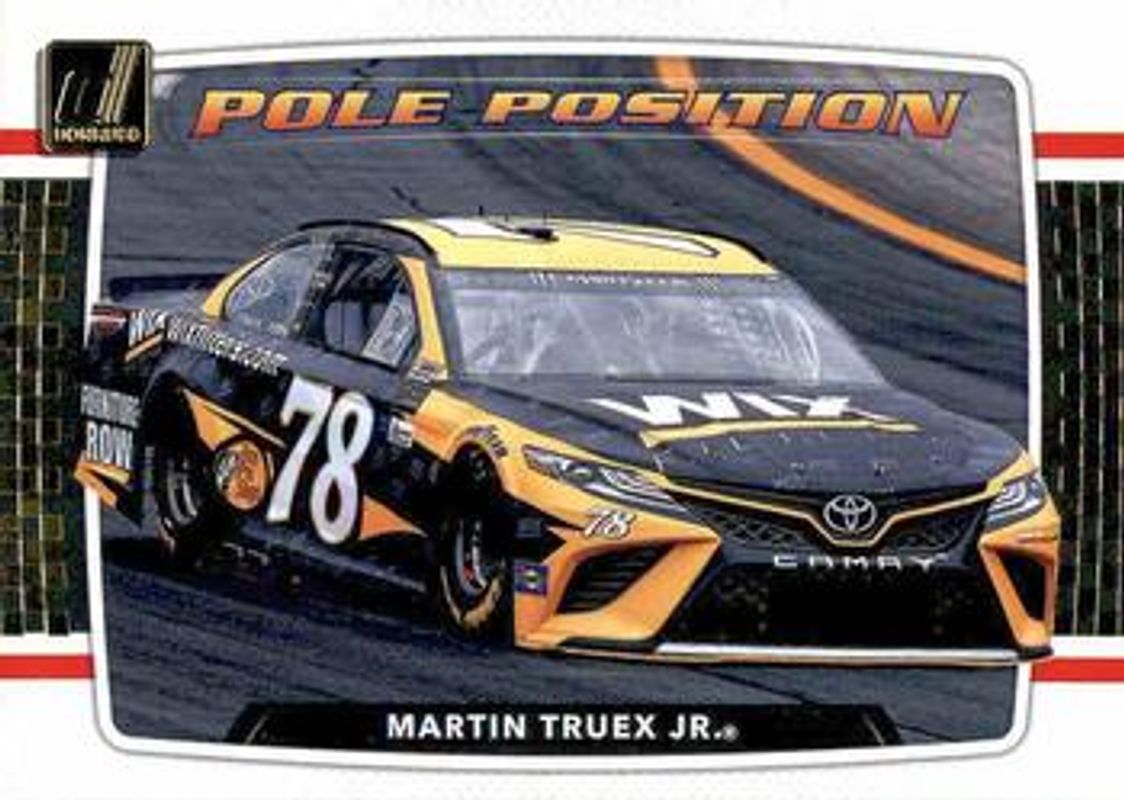 The Martin Truex Jr. 2018 Donruss NASCAR #PP12 Pole Position card is 1 of 77 Martin Truex Jr.'s card variations in the 2018 Donruss NASCAR set being tracked by Sports Card Investor, including #139 Base, #83 Base, #49b Base, #49a Base, and #22 Base.
