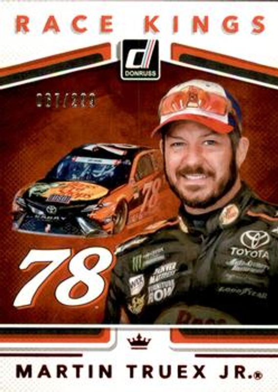 The Martin Truex Jr. 2018 Donruss NASCAR #22 Red Foil /299 card is 1 of 77 Martin Truex Jr.'s card variations in the 2018 Donruss NASCAR set being tracked by Sports Card Investor, including #139 Base, #83 Base, #49b Base, #49a Base, and #22 Base.