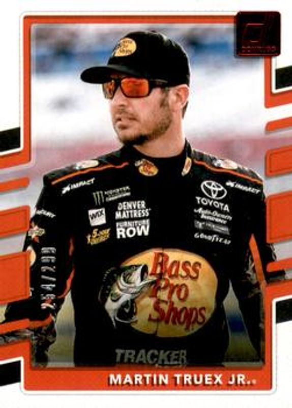 The Martin Truex Jr. 2018 Donruss NASCAR #49a Red Foil /299 card is 1 of 77 Martin Truex Jr.'s card variations in the 2018 Donruss NASCAR set being tracked by Sports Card Investor, including #139 Base, #83 Base, #49b Base, #49a Base, and #22 Base.