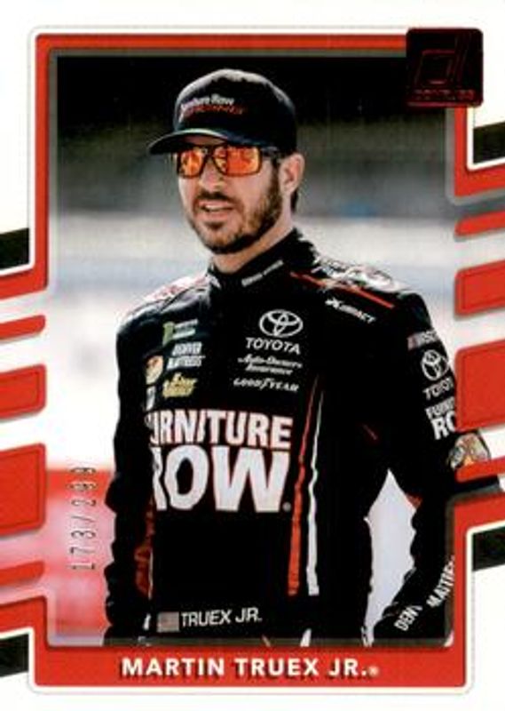 The Martin Truex Jr. 2018 Donruss NASCAR #49b Red Foil /299 card is 1 of 77 Martin Truex Jr.'s card variations in the 2018 Donruss NASCAR set being tracked by Sports Card Investor, including #139 Base, #83 Base, #49b Base, #49a Base, and #22 Base.