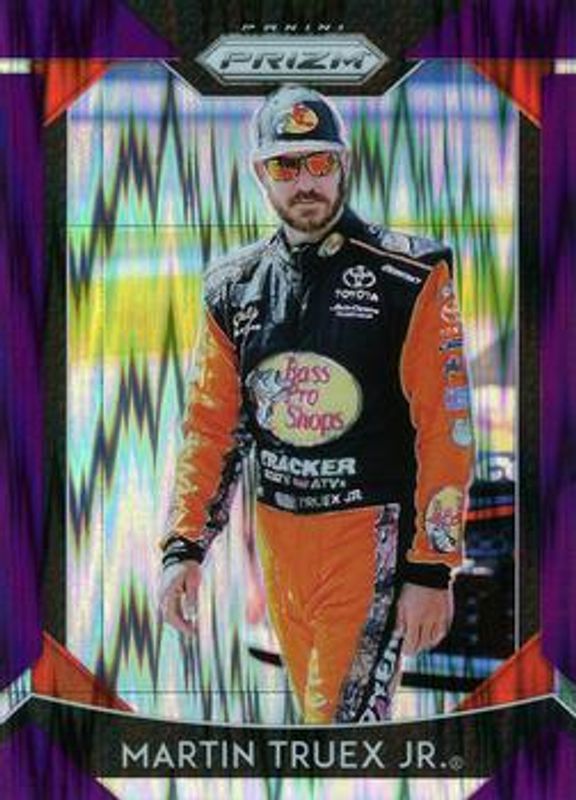 The Martin Truex Jr. 2019 Prizm NASCAR #16 Purple Flash (Hobby) card is 1 of 104 Martin Truex Jr.'s card variations in the 2019 Prizm NASCAR set being tracked by Sports Card Investor, including #16 Base, #56 Base, #63 Base, #77 Base, and #85 Base.