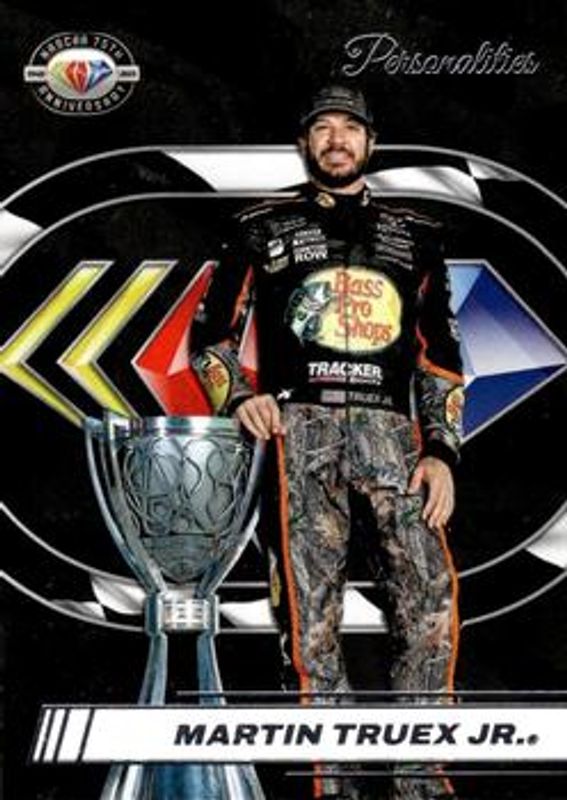 The Martin Truex Jr. 2023 Donruss NASCAR #6 NASCAR 75th Anniversary card is 1 of 145 Martin Truex Jr.'s card variations in the 2023 Donruss NASCAR set being tracked by Sports Card Investor, including #58 Base, #10 Base, #122 Base, #143 Base, and #143 Carolina Blue.