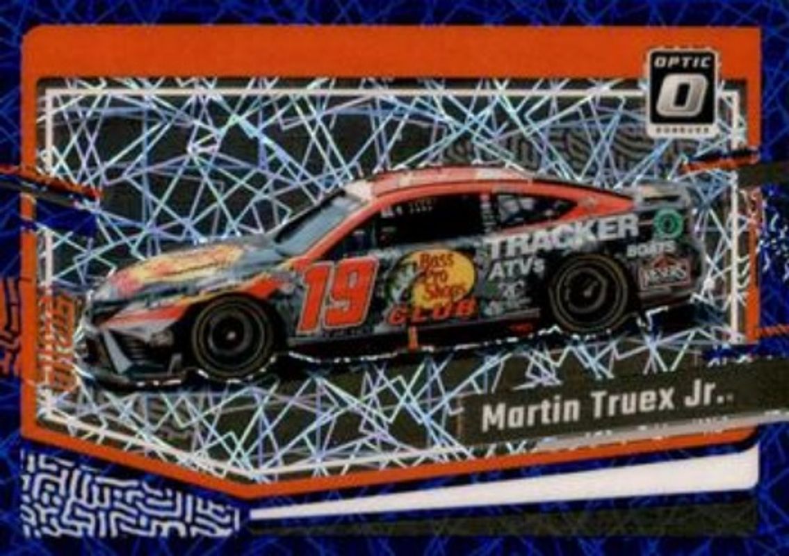 The Martin Truex Jr. 2024 Donruss NASCAR #77 Optic Blue Velocity card is 1 of 151 Martin Truex Jr.'s card variations in the 2024 Donruss NASCAR set being tracked by Sports Card Investor, including #77 Base, #39a Base, #39b Base, #181 Base, and #39 Optic.