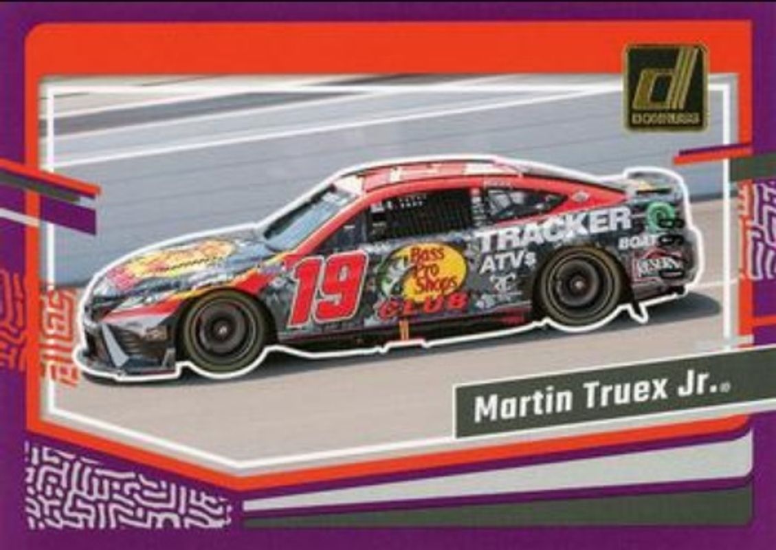 The Martin Truex Jr. 2024 Donruss NASCAR #77 Purple /99 card is 1 of 151 Martin Truex Jr.'s card variations in the 2024 Donruss NASCAR set being tracked by Sports Card Investor, including #77 Base, #39a Base, #39b Base, #181 Base, and #39 Optic.