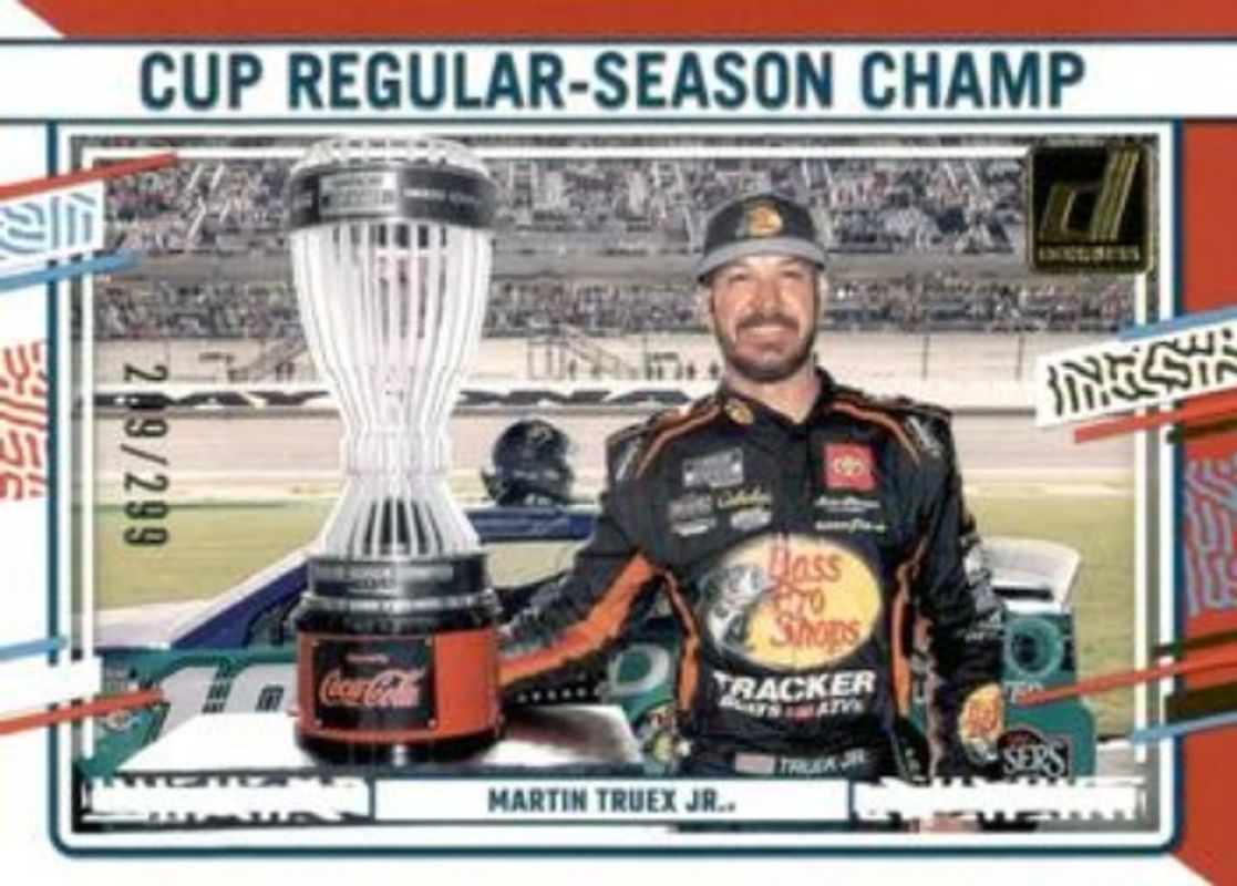 The Martin Truex Jr. 2024 Donruss NASCAR #181 Red /299 card is 1 of 151 Martin Truex Jr.'s card variations in the 2024 Donruss NASCAR set being tracked by Sports Card Investor, including #77 Base, #39a Base, #39b Base, #181 Base, and #39 Optic.