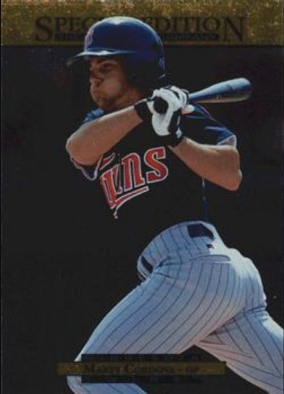 The Marty Cordova 1995 Upper Deck #215 Special Edition Gold card is 1 of 7 Marty Cordova's card variations in the 1995 Upper Deck set being tracked by Sports Card Investor, including Base, Electric Diamond, Electric Diamond Gold, Predictors: Award Winners, and Predictors Exchange: Award Winners.