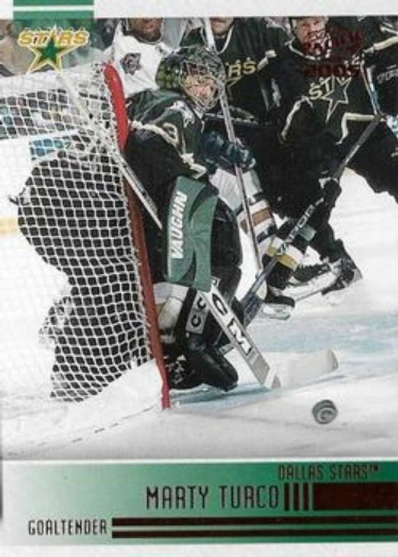 The Marty Turco 2004 Pacific #88 Red card is 1 of 5 Marty Turco's card variations in the 2004 Pacific set being tracked by Sports Card Investor, including Base, Blue /250, All Stars, and In the Crease.