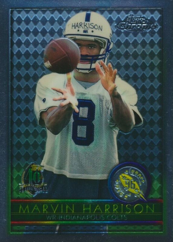 This card is 1 of 2 Marvin Harrison's card variations in the 1996 Topps Chrome set being tracked by Sports Card Investor, including Refractor.