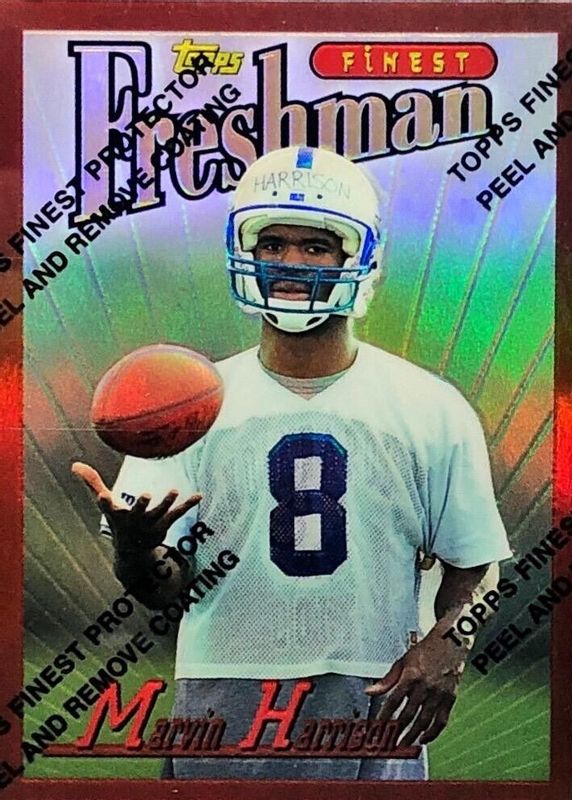 This card is 1 of 2 Marvin Harrison's card variations in the 1996 Topps Finest set being tracked by Sports Card Investor, including Bronze.