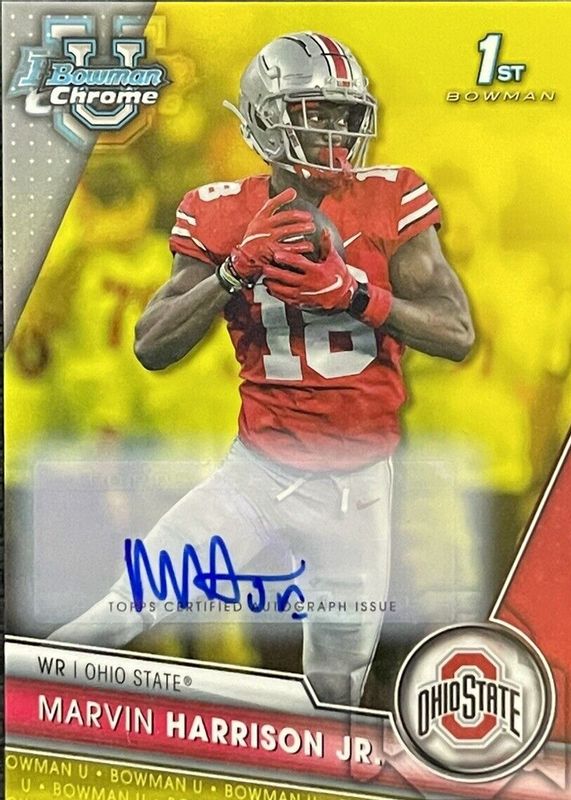 2023 Bowman U Chrome MARVIN HARRISON JR Autograph Yellow /75 1st Ohio State