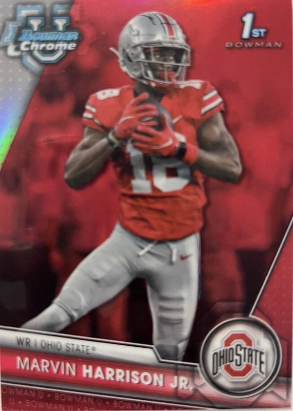 Auctions Ending Soon for Marvin Harrison Jr. 2023 Bowman Chrome University #100 Prospects - Red Refractor /5 (1st) RAW