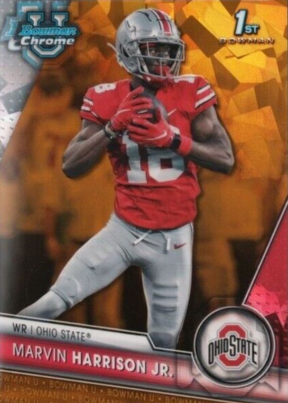 Best Prices Available For Sale of Marvin Harrison Jr. 2023 Bowman Chrome University Sapphire Edition #100 Gold /50 (1st)