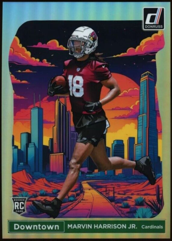 The Marvin Harrison Jr. 2024 Donruss #12 Oversized Downtown Rookie card in Raw condition has moved down -$3.92 (-21.3%) in the last 30 days and was last sold for $14.51 .