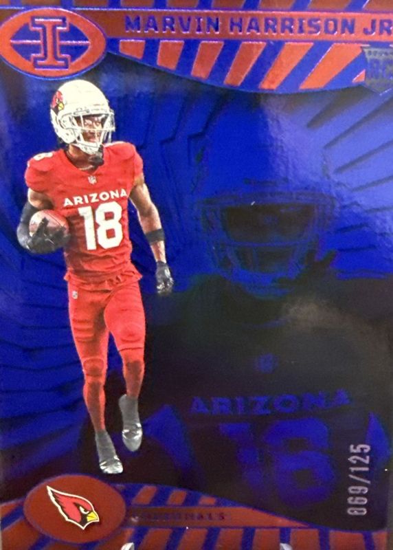 The Marvin Harrison Jr. 2024 Illusions #3 Trophy Collection Blue /125 Rookie card in Raw condition has not changed in price in the last 30 days and was last sold for $4.99 .