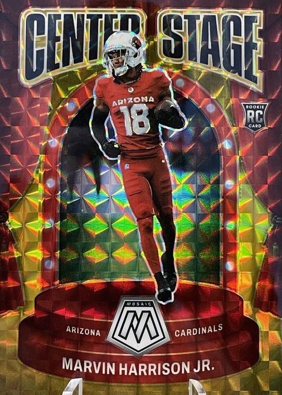 2024 Mosaic Marvin Harrison Jr. Center Stage RC Mosaic Prizm Gold /10 Cardinals