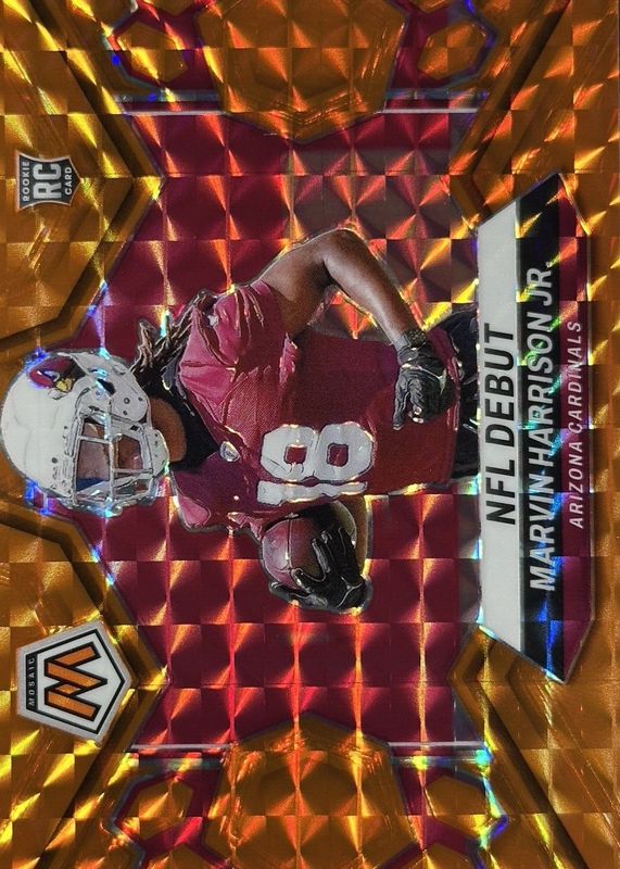 The Marvin Harrison Jr. 2024 Mosaic #283 NFL Debut - Orange /199 Rookie card in Raw condition has not changed in price in the last 30 days and was last sold for $3.99 .