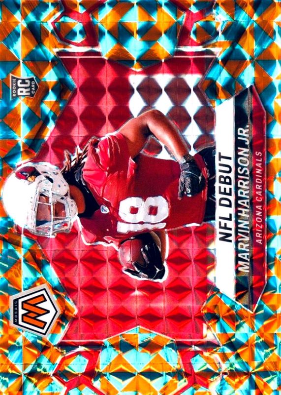 The Marvin Harrison Jr. 2024 Mosaic #283 NFL Debut - Tessellation /15 Rookie card in Raw condition has not changed in price in the last 30 days and was last sold for $102.57 .