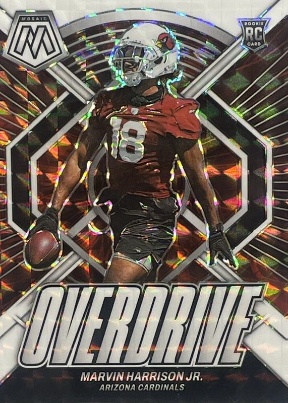 The Marvin Harrison Jr. 2024 Mosaic #2 Overdrive - White /25 Rookie card in Raw condition has not changed in price in the last 30 days and was last sold for $33.00 .