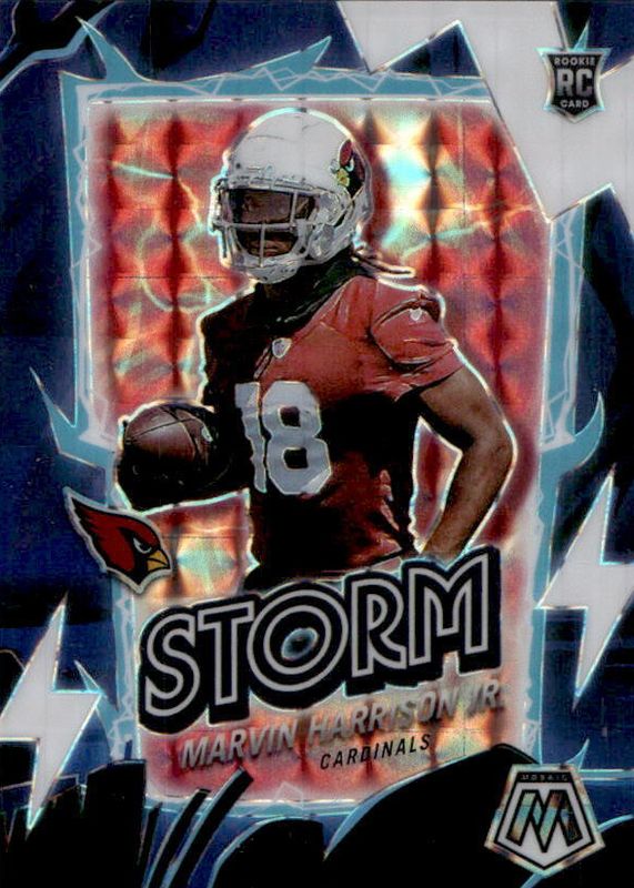 The Marvin Harrison Jr. 2024 Mosaic #11 Storm - White /25 Rookie card in Raw condition has not changed in price in the last 30 days and was last sold for $34.00 .