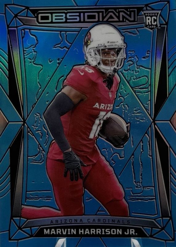 The Marvin Harrison Jr. 2024 Obsidian #1 Blue /25 Rookie card in Raw condition has not changed in price in the last 30 days and was last sold for $38.00 .